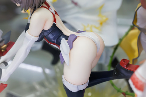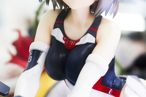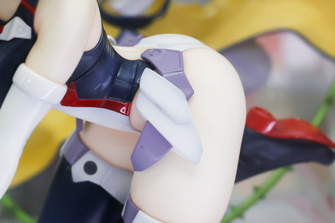 体を伏せているということもあるが、どちらかというと背中側の方がよく見えるような姿勢だ。その分といってはなんだが、この背中側の水着は大きく開いており露出度が高めになっている。また、片足を大きく上げているポーズも躍動感があり、今にも動き出しそうだ。