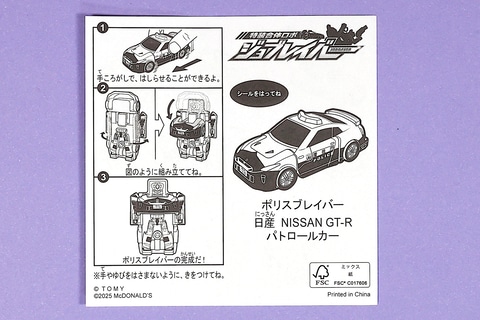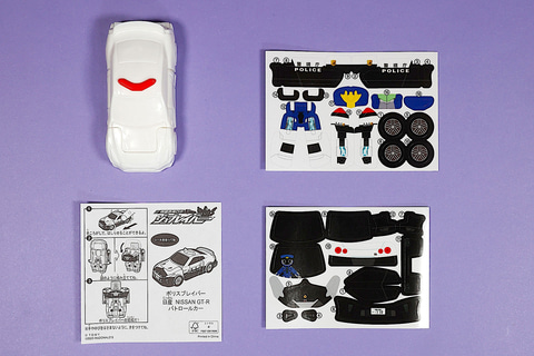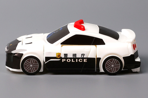 こちらの「ポリスブレイバー 日産 NISSAN GT-R パトロールカー」は、日産 NISSAN GT-R パトロールカーをモチーフにしたおもちゃだ。こちらの車両から変形させることで、ロボット型のポリスブレイバーに変形させることがでるのが特徴だ。