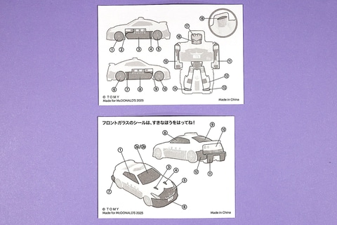 これはすべてのおもちゃに共通していることだが、それぞれシールが2枚ずつ付属しており、シールの点数が多く、シールによってはわかりにくいところもあるので、まずは大きく目立つものから貼っていくのがいいだろう。