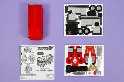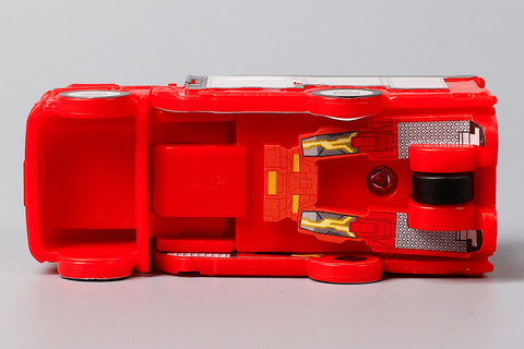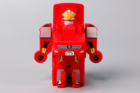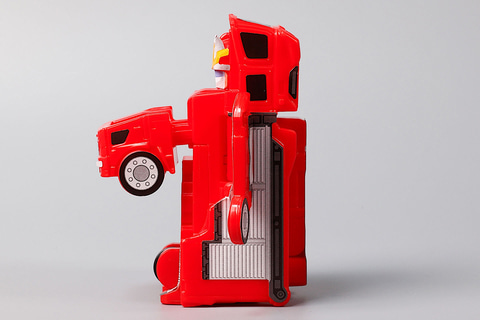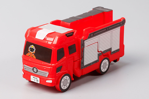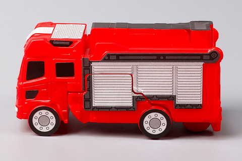 こちらの「ファイヤブレイバー モリタ 多目的消防ポンプ自動車 MVF」は、モリタ 多目的消防ポンプ自動車 MVFをモチーフにしたおもちゃだ。残念ながらミニカーのようにハシゴを動かすなどのギミックは盛り込まれていないものの、その代わりにファイヤブレイバーの状態に変形させて遊ぶことができる。