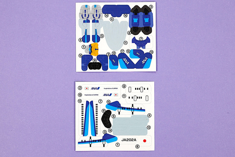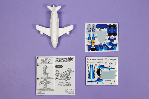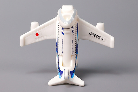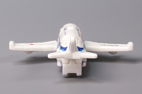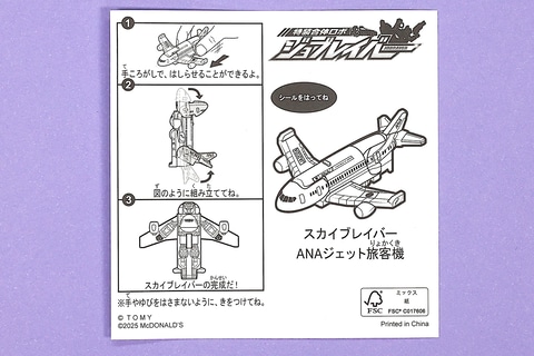 今回のハッピーセット「特装合体ロボ ジョブレイバー」に登場するおもちゃの中では、唯一車両ではなく飛行機の形をしているのが「スカイブレイバー ANA ジェット旅客機」だ。こちらは、ANAのジェット旅客機をモチーフにしたものである。