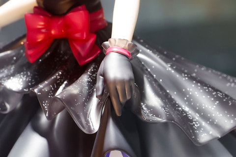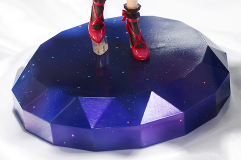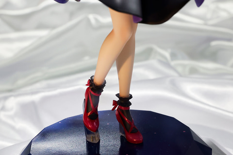 スカート部分を両手で持ち上げたようなポーズになっているため、若干ふんわりと膨らんだような姿になっている。足元のパンプスは、首元や腰のリボンと同じ赤い色で、こちらも似合っている。台座部分はシンプルだがジュエリーのような形になっており、こちらの作品の雰囲気と合っている。
