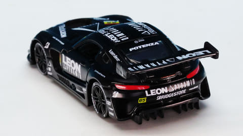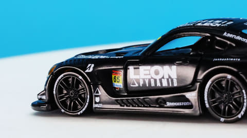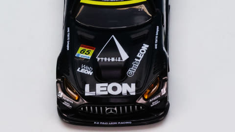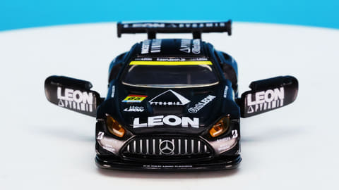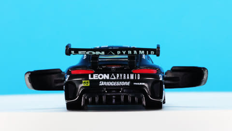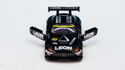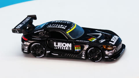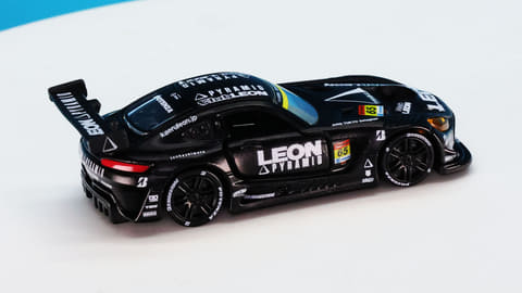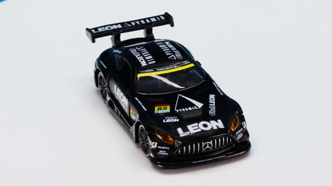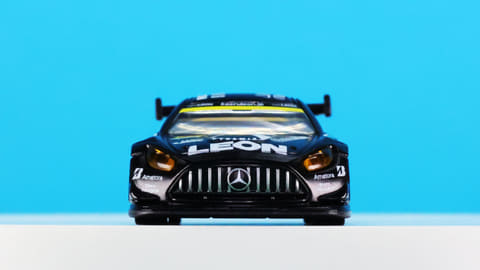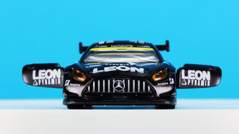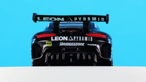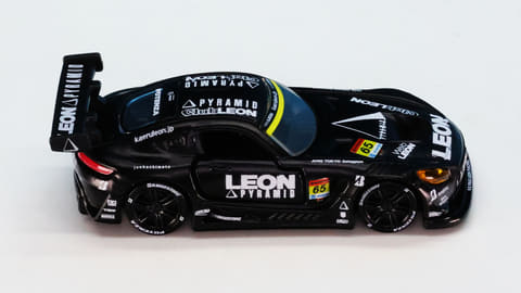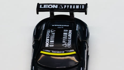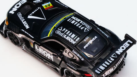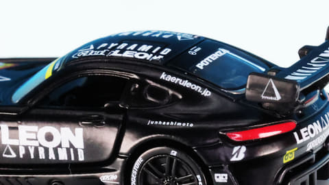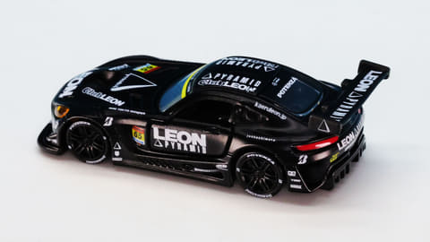 「レオン ピラミッド AMG」はスーパーGTに参戦するチーム「LEON RACING」が採用するメルセデス AMG GT3です。このチームは「週末のサーキットを大人の遊び場に!」という願いを込めて2013年に立ち上げられたレーシングチームで、LEONといえば“大人を楽しみたい”というコンセプトを掲げる男性向けファッション雑誌で有名です。