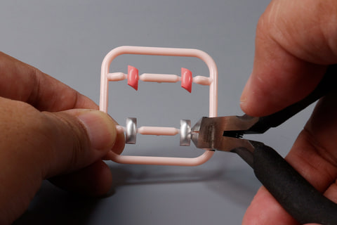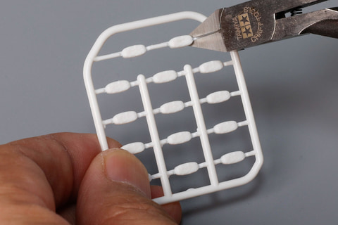 まずはこれらのパーツをひとつひとつニッパーで切り離していきながら、ターンテーブルへの設置とさらに寿司を盛り付けていこう。このターンテーブルにシャリパーツを取り付けていくときは、少しずつ回転させながら確認することをオススメする。