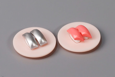 たとえば、ブルーのデザインが採用されているオリジナルには、寿司ネタとしても王道の「マグロ(赤身)」と「サーモン」が付属している。先ほども紹介したパステルピンクは、「マグロ(トロ)」と「サバ」だ。同じように、パステルイエローには「たまご」と「あなご」、パステルグリーンには「イカ」と「ブリ」といった感じで、それぞれ個性的な寿司ネタが選ばれているところも面白い。