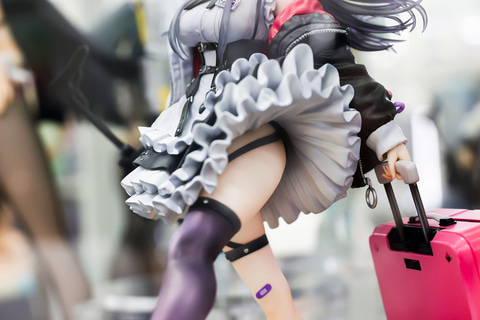 こちらの作品の魅力のひとつとも言えるのが、付属品の多さだろう。フィギュア本体の出来映えも素晴らしいが、バリスティック・シールドの役割も兼ね備えたピンク色のスーツケースや、周囲を取り囲むように台座に取り付けられた地雷など、戦闘スタイルのガジェット感も満載だ。