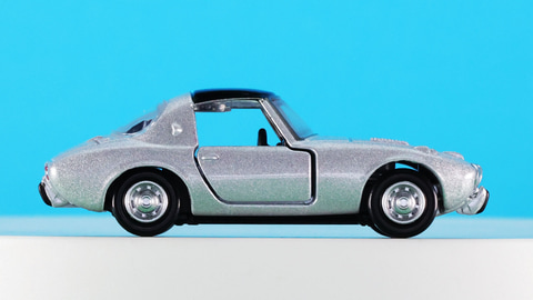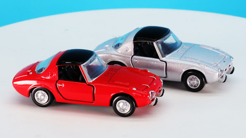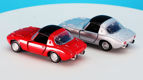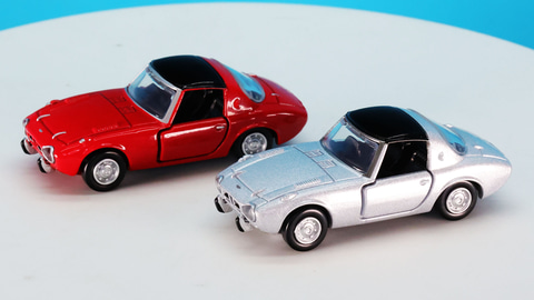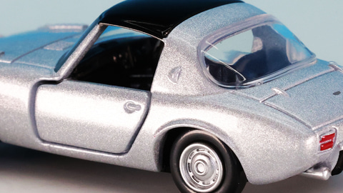 それではトミカプレミアムになった「トヨタ スポーツ800」を見ていきましょう。なんといってもそのコンパクトなボディにはこのクルマが持つ魅力がキュッと凝縮されている印象です。通常仕様のカラーがレッド、発売記念仕様がシルバーです。実車ではレッドが「セミノールレッド」、シルバーが「アメジストシルバー」という名称のカラーがラインナップされていました。後に「ジルコンブルーM」というブルー系カラーが追加されますがいずれも宝石の名前でこのクルマが持つキャラクターを表すカラーリングになっています。