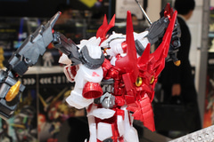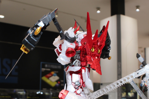 ガンダムベース東京で先行して展示されたその姿は、隠し腕を展開した状態で2刀を構えた仏像のようなポーズとなっていた。全ての腕を使ったダイナミックなポーズも楽しめるだろう。