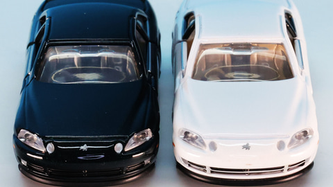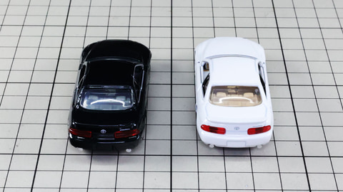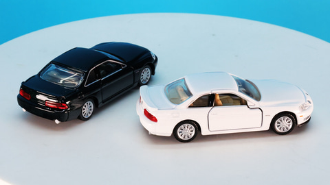 カラーリングは通常仕様がブラック、発売記念仕様がホワイトです。実車ではブラックは「ブラック」。ホワイトは「スーパーホワイトパールマイカ」という名称のカラーがあります。このブラックは擦り傷への耐性を向上させたもので、ホワイトはマイナーチェンジで入れ替わるホワイトなのでそれも希少なカラーとなっています。