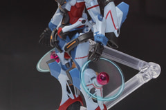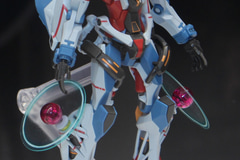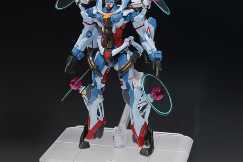 PETシートによる光輪は中央部分にクリアパーツを採用してそれを固定し、四肢から浮き上がるような効果を見せている。先に発売された「HG 1/144 GQuuuuuuX」と同様に可動域が広く、各種武装も付属するので、完成後は様々なシーンのポーズを楽しめそうだ。