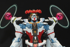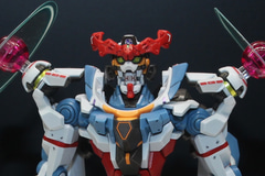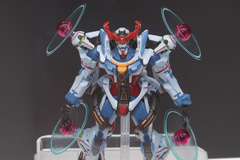 GQuuuuuuXは「HG」シリーズでも発売済みだが、この「HG 1/144 GQuuuuuuX(エンディミオン・ユニット覚醒時)」は頭部ユニットの開閉ギミックを搭載し、四肢に展開される光輪のエフェクトをPETシートにて再現している。このサイズにして頭部の開閉ギミックを実現しているのは見事なもので、ポージングなども楽しめそうだ。