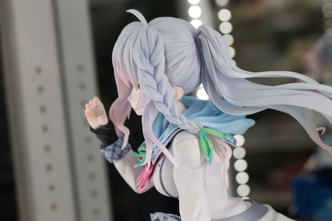 元になったイラストでは、ふんわりと空に浮かんでいるような表現になっていたが、こちらのフィギュアでも、その空気感のようなものもしっかりと再現されている。とくにそれを強く感じさせる部分が長く伸びた新海天の髪である。
