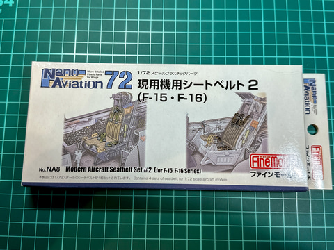実際の作業では、座席は外装塗装時の乾燥待ち時間に制作しましたが、本記事ではコックピット制作に続いて紹介します。本キットの座席パーツだけでも細かいモールドが彫刻されていますが、別売りの「1/72スケール現用機用シートベルト 2 (F-15・F-16用)」を使用することでより情報量が増えます。