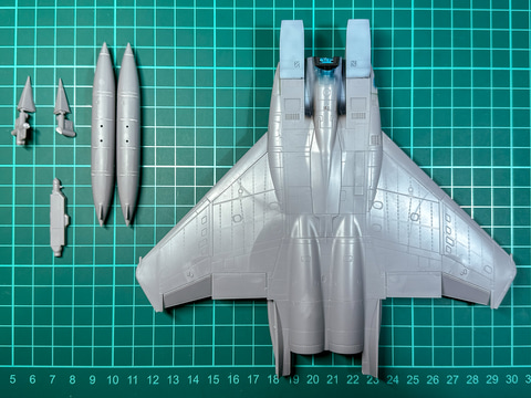 チャフ/フレアディスペンサーは塗装前に取り付けます。その他のディテールアップパーツは塗装後の取り付けです。