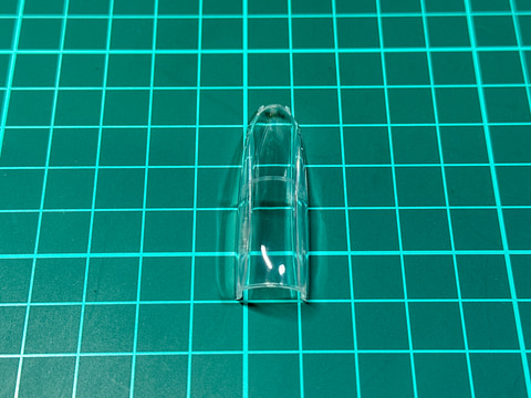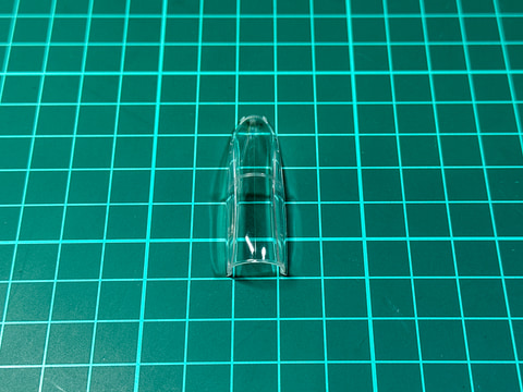 F-15のキャノピーにはバブルキャノピーが採用されています。このように湾曲した部品は射出成形の際に、中央にパーティングラインが発生します。このパーティングラインは実機には存在せず、そのまま完成させると目立つので除去したいところです。クリアパーツのパーティングラインは高い番手までヤスリをかけることで消すことができます。