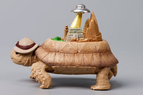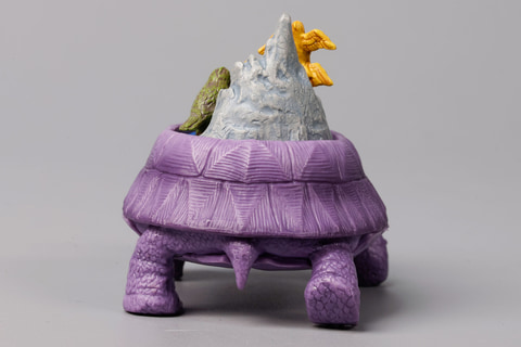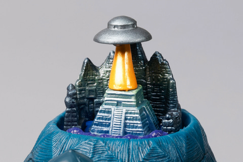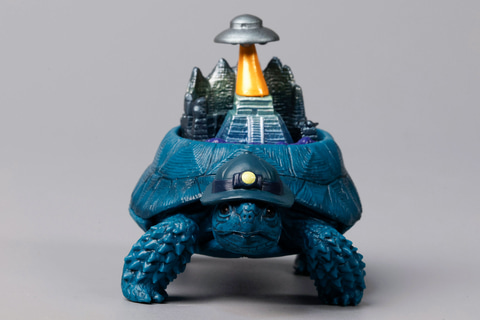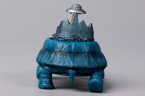 オカルト雑誌の名前にも付けられていることでもおなじみの、伝説のムー大陸をモチーフにしたのが、こちらの「ムー大陸ガメ」だ。そうしたこともあり、全く知らない大陸であるにもかかわらず、なぜかなじみ深く感じる人も多いのではないだろうか。こちらのフィギュアも、その期待を裏切らないような要素がてんこ盛りになっている。