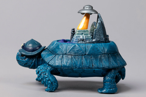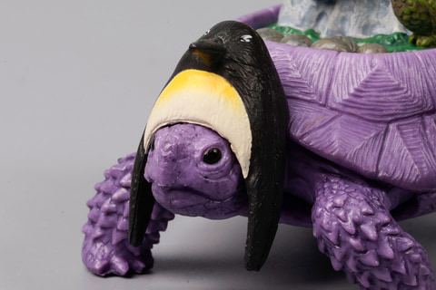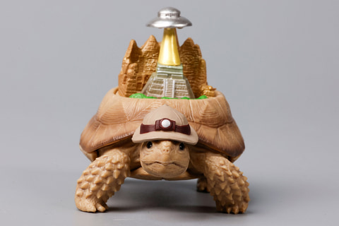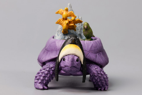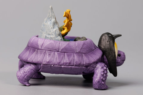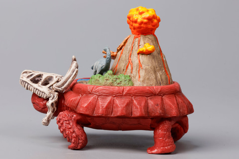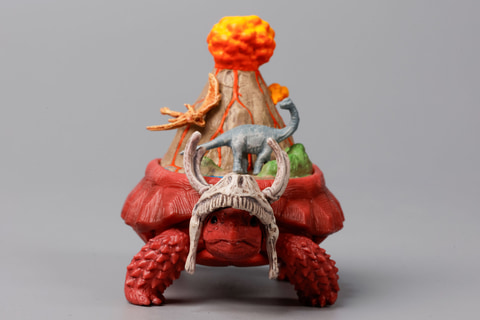こちらの「パンゲア超大陸ガメ」は、ペルム紀から三畳紀に存在したパンゲア大陸をモチーフにしたフィギュアだ。体が赤い陸ガメをベースに、太古に存在したといわれる伝説の大陸がジオラマ風に再現されているのがポイントだ。