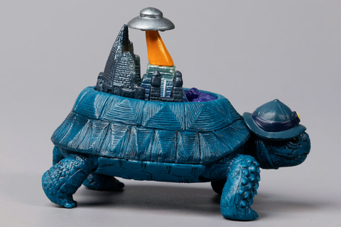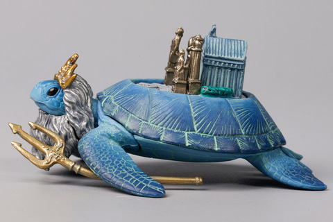 第1弾の「大陸ガメ」も含めて、ほかの大陸ガメはリクガメをベースにしていたが、こちらの「アトランティス海底大陸ガメ」はシリーズで初めてウミガメがモチーフになっている。それもそのはずで、モチーフになったアトランティスはある日突然海底に沈んだといわれている大陸だからだ。