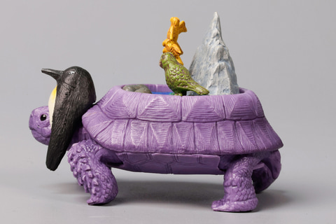 南極大陸と分裂後にオーストラリア大陸とも分裂し、その後ほとんどが海に沈んでしまったと言われる古代の大陸ジーランディアをモチーフにしたのが、こちらの「ジーランディア大陸ガメ」だ。紫色に染められており、どこかファンキーなスタイルに見えるところが面白い。