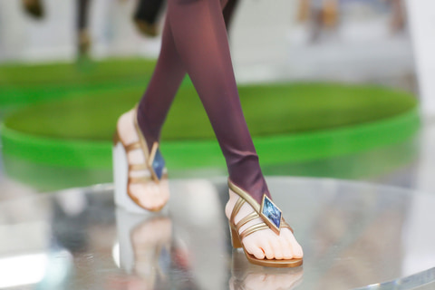 衣装の下半身部分はシースルーになっており、この衣装の色も鮮やかなグラデーションが掛けられているほか、宝飾品のような飾りがつけられており、豪華な見た目になっている。脚はロングブーツのような見た目で、足元部分はサンダルのようになっているところも面白い。