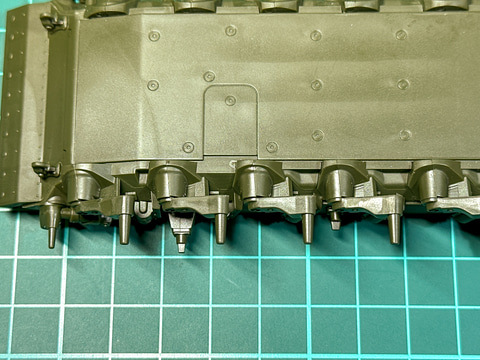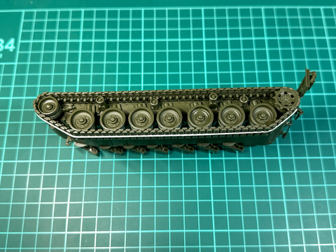 C組みが完了した履帯は基本塗装の完了後に本体へ取り付けます。