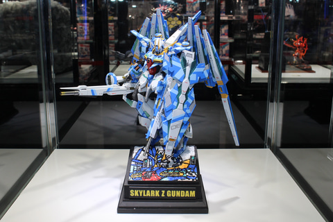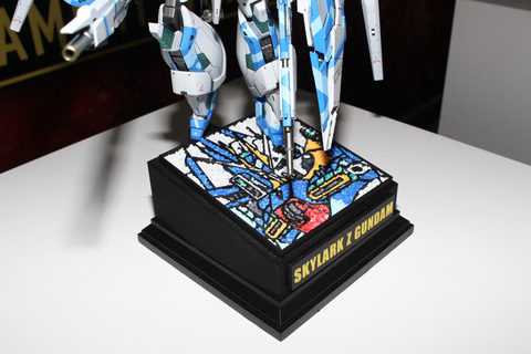 U-14コースのチャンピオンは、中国内地エリア代表ZHOU HAOXUAN選手の「FLY, SKYLARK Z GUNDAM!」。塗装に強いこだわりが見える作品で、機体の要所にはサイコフレームが見えていて、背中のファンネルまでそれをしっかり再現していて、造形面でも優れた作品との評価。モザイクで表現された台座のイラストも見どころだ。