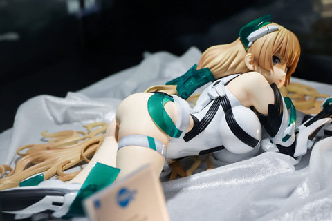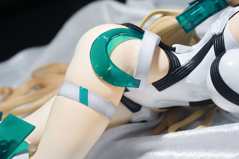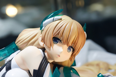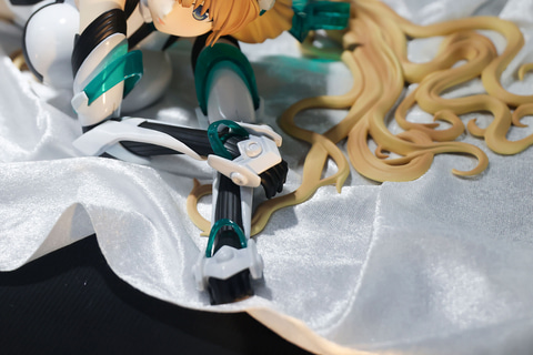どこかあどけない表情で、こちらを見つめているような姿をしたこちらのアンジェラ。頭部につけたメカニカルな装備はもちろんのこと、絶妙な配色が施された長い髪は全身の長さぐらいまで床に広がっている。