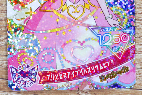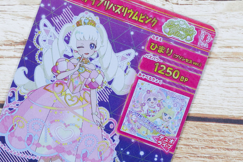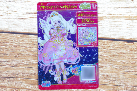 背面側にもカードの情報が記載されているが、こちらのアイプリカードのバズパワーは1250BPとなっている。今回のアイプリカードに採用されているイラストは、キュートなプリンセスのコーデの衣装を身にまとったものが描かれている。