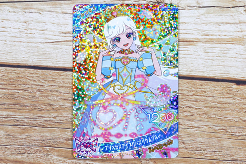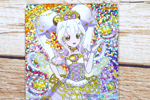カードに描かれているイラストは、白くて長いツインテールが特徴的だ。ドレスを身に付けていることで、そちらがより際だって見える。ドレス部分にも様々な装飾が付けられており、ゴージャスな雰囲気だ。同じプリンセスコーデでも、キャラクターによって見た目が大きく異なっているのは面白いところだ。