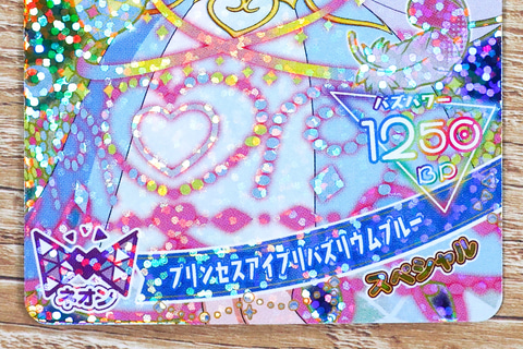 こちらの「リング(プリンセスバズリウムムーンミルキーパープル)」は、リングがプリンセスコーデ姿で描かれたアイプリカードだ。こちらのアイプリカードのレアリティは「スペシャル」で、バズパワーは他の2枚よりも少しだけ低い1250BPになっている。