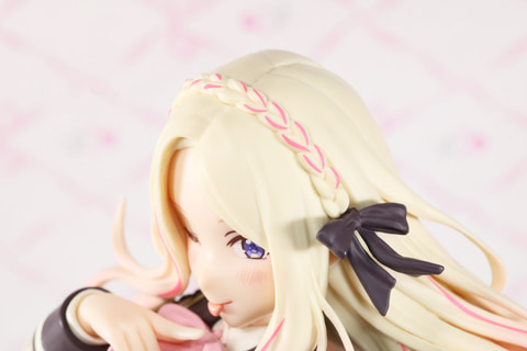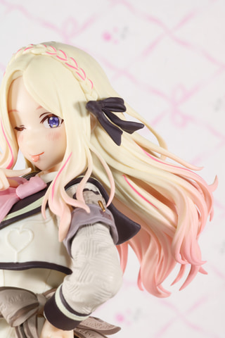 「学園アイドルマスター ESPRESTO-Sweet moment-十王星南」はバレンタインをテーマにした衣装となっている。ホワイトを基調としたカラーリングで、甘く上品な雰囲気が感じられる。また、アンダースカートのパニエはビビッドなピンクとなっている。大きく足を上げたアグレッシブなポージングはもちろん、元イラストのプロポーションも見事に再現されている。