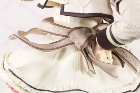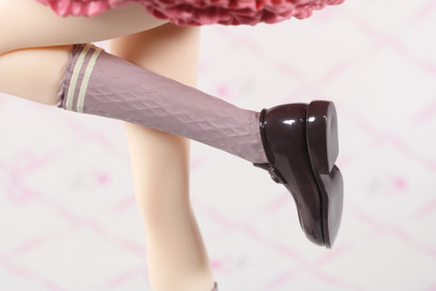 スカートの裾のフリルも生クリームを感じさせるふんわりした雰囲気が演出されている。靴下もウエハースのような意匠を感じさせるデザインが再現されている。