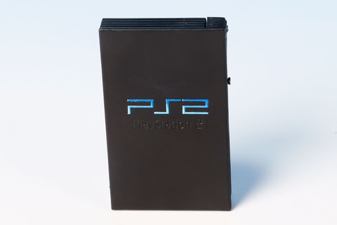 黒いボディにブルーのグラデーションで「PS2」の文字が大きく描かれているなど、マシンの特徴もよく捉えられている。また、PlayStation™のロゴマークなども含めて細部までしっかりと再現されており、小さいながらも写真だけ見ていると本物かと見間違えるほどの出来映えだ。