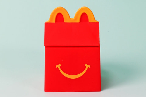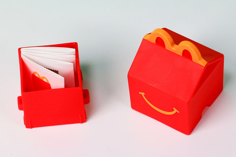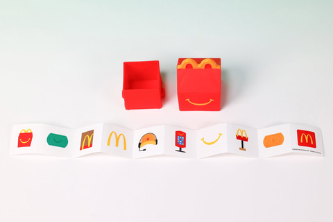 こちらの「ハッピーセットボックス」も、海外版のハッピーセットことハッピーミールで提供されている箱をモチーフにしたおもちゃだ。「ハッピーセット びっくりボックス」よりも少しだけ小ぶりになっているほか、「マクドナルドバッグ」と同じように上部を取り外すと、中にシールが入っている。