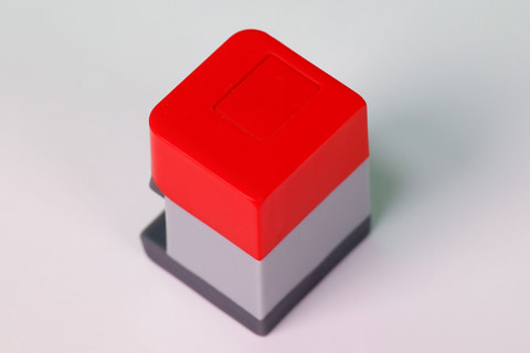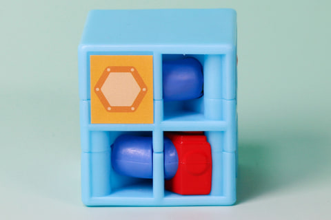 こちらの「ハッピーセット びっくりボックス」は、日本ではなく海外で展開されているハッピーミールで提供されている箱の「ハッピーセットボックス」をモチーフにしたおもちゃだ。箱の背面側にボタンが設置されており、こちらを押すことでびっくり箱のように青いロボットが飛び出すギミックが仕込まれている。
