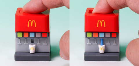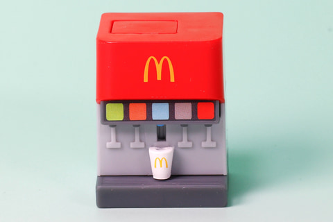こちらの「マクドナルド ドリンクメーカー」は、マクドナルドの店舗内に設置されているドリンクメーカーをモチーフにしたおもちゃだ。見た目の再現度もなかなかだが、上部に設置されているボタンを押すことでドリンクが流れ出している様子が再現できるようになっているところも面白い。