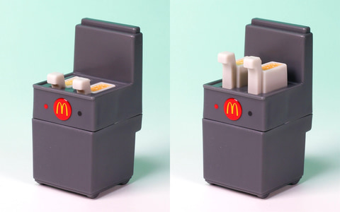 こちらは、マクドナルド店舗内に設置されているフライドポテトの調理器具をモチーフにした「マクドナルド ポテトフライヤー」だ。本体の背面側にレバーが設置されており、こちらを動かすことでポテトを揚げている最中と揚げ終わった状態に切り替えられるようになっている。
