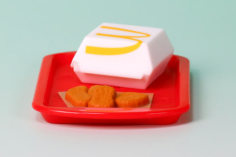 こちらの「チキンマックナゲット」は、トレイの上に乗せられたチキンマックナゲットをモチーフにしたおもちゃだ。こちらも完全に固定されているため動かすことはできないが、ミニチュアとしての作りは素晴らしく、ごっこ遊び向けのアイテムにも最適だ。