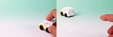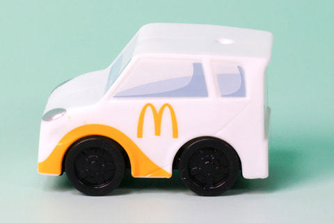 こちらの「マクドナルドカー」は、その名の通りマクドナルドデザインの車をモチーフにしたミニカーだ。白い車体には、黄色いロゴマークが描かれている。特別なギミックはないものの、通常のミニカーのように手で押して走らせることもできる。