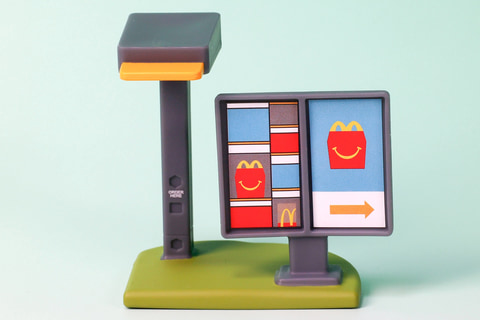 ドライブスルーに対応した店舗に設置されているメニューボードを再現したのが、こちらの「マクドナルド ドライブスルーメニューボード」だ。このままの状態でも特に問題ないが、付属のシールを貼って自分好みにカスタマイズすることもできる。ほかのおもちゃとも組み合わせて遊びやすいアイテムだ。