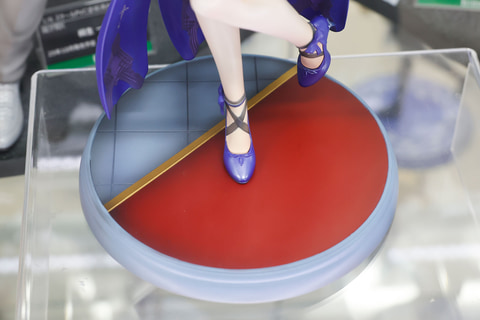 片方の手でドレスの裾を持ち上げているポーズもキュートだ。腰のあたりには白い薔薇の花がワンポイントで付けられており、こちらもかなり目立つ。また台座部分のデザインも、赤い絨毯と床のツートンになっているところがユニークだ。