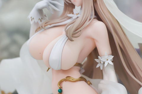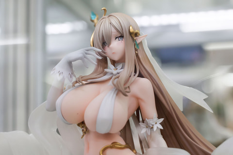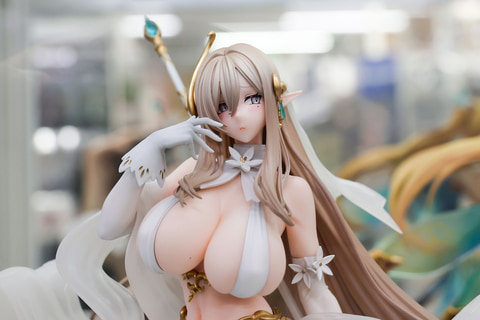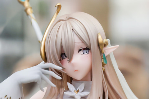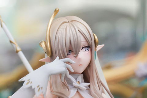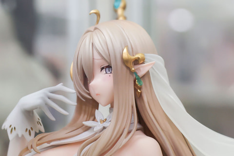 最初に少しだけ補足しておくと、今回展示されていたものはあみあみ限定で販売されている「困り顔パーツ」や「特製芝台座」、「A3タペストリー」などが付属した特典版だ。そのため、ゼフィアの表情もどこか愁いに満ちたものとなっている。