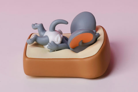 こちらの「クッションでのけぞるタフィー」は、黄色いクッションの上でタフィーがまったりとくつろいでいる姿が再現されている。まさに日常の一場面を切り取ったようなアイテムだが、このゆるい雰囲気がなんとも魅力的だ。