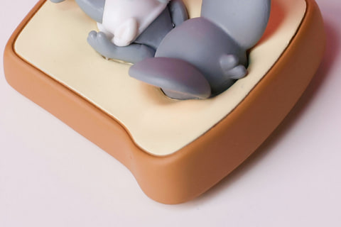 いったい、どんな場面だよ!? と思わずツッコミを入れてしまいたくなるようなミニフィギュアが、こちらの「食パンにダイブするタフィー」だ。作中に登場するタフィーの正確なサイズ感はわからないものの、食パンを布団代わりに寝られるほど体が小さい点もかわいらしい。
