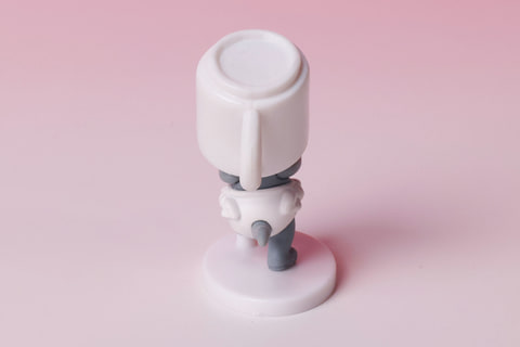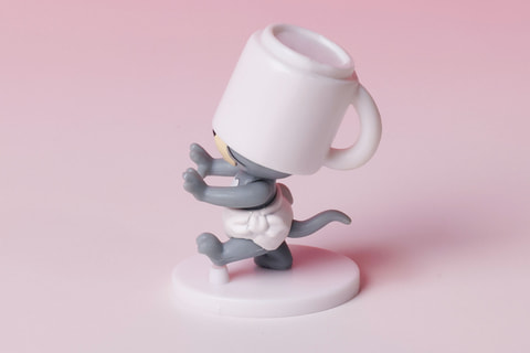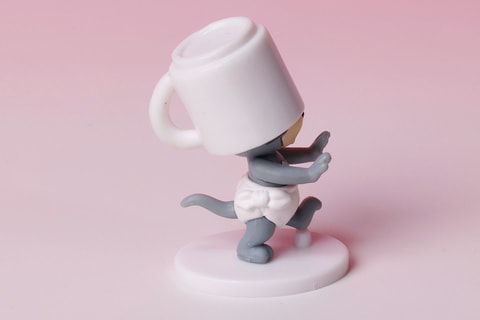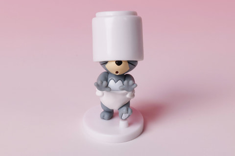 これまた「トムとジェリー」らしい、コミカルな場面を再現したミニフィギュアが、こちらの「コーヒーカップをかぶったタフィー」だ。なぜか頭にコーヒーカップをかぶせられ、前が見えずにふらふらとしているような姿になっている。