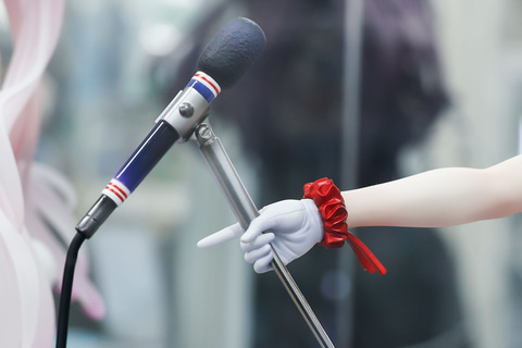 下半身部分の衣装もなかなかユニークなデザインで、腰のあたりから伸びた赤い紐がロングブーツに付けられている。このブーツ部分もエナメルのような光沢感がよく再現されており、片方の足をマイクスタンドのベース部分に乗せているポーズも様になっている。