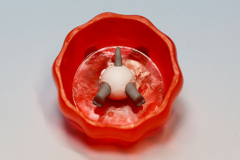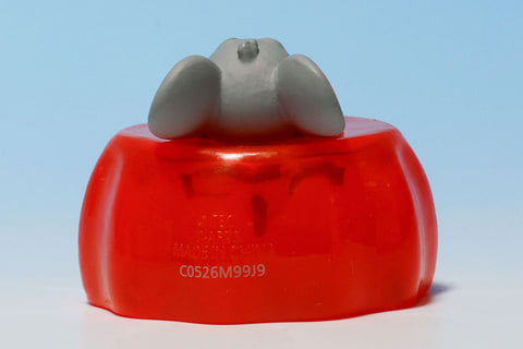 このタフィーが埋まっているゼリーの部分だが、おもちゃとして見るとすべてプラスチックのような素材で埋め尽くされているわけではなく、スカートのような構造になっている。クリア素材なので、体が埋まった部分もうっすらと見えるようになっている。