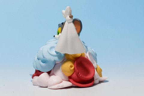 今回は、「落ちてきた食器にまみれるトム」と「チーズにまみれるジェリー」、「ゼリーにまみれるタフィー」の全3種類のアイテムがラインナップされている。いずれの作品も、見ているだけで想像力が膨らむものばかりだ。