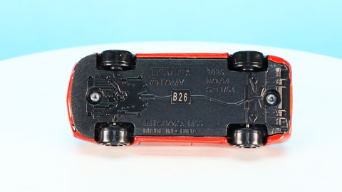 そしてこれも当時のクルマによく装備されていたリアウインドウ上のルーバー!上からの太陽光は遮断しつつ、後方視界はさほど妨げないこのオプション装着バージョンを通常仕様に採用しているのが心憎い配慮です。対して初回特別仕様にはこのルーバーはついておらず、両者で仕様違いがありぜひ揃えて並べてみたい凝ったトミカになっています。