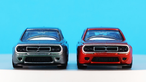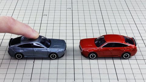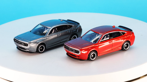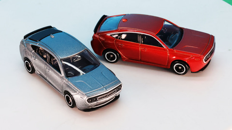 それではトミカになった「No.94 光岡 M55」を見ていきましょう。カラーリングは通常仕様がグレー、初回特別仕様がレッドとなっています。実車でのグレーは「スカイスクレイパーグレイ(オプションカラー)」、レッドが「プレミアムクリスタルレッドメタリック(標準カラー:特別塗装色)」という名称のカラーがあり、それらがモチーフになっていると思われます。
